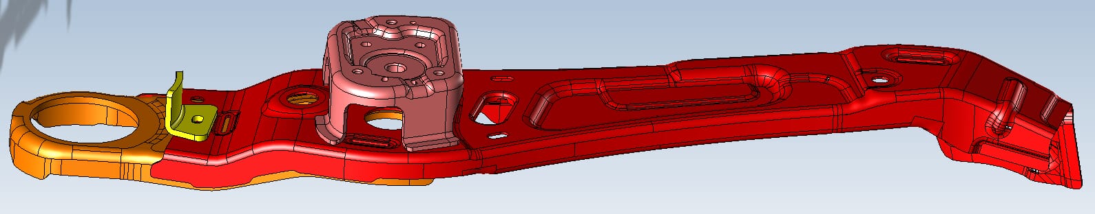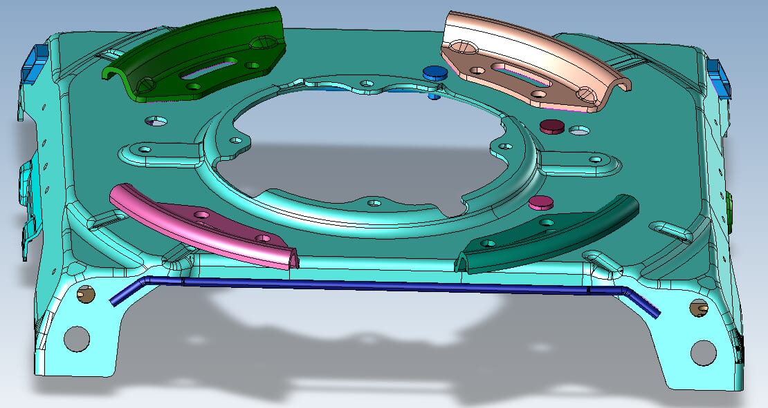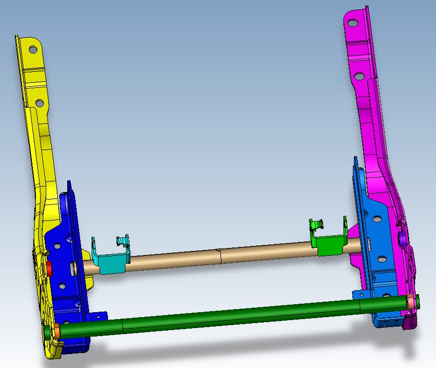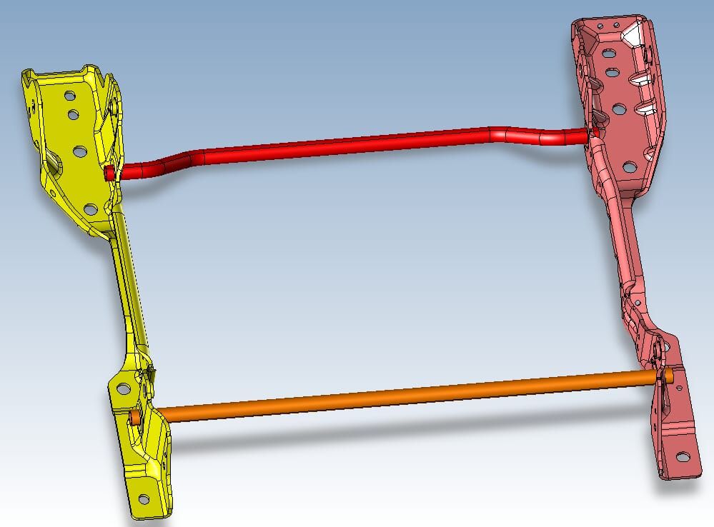 汽车前排或二排连接板、强度件,工艺涉及冲压、焊接、铆压等,用于连接靠背和坐框