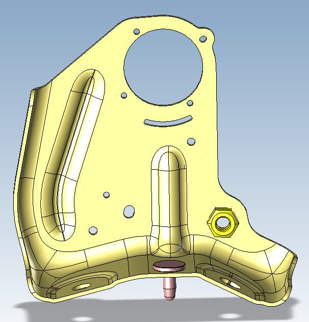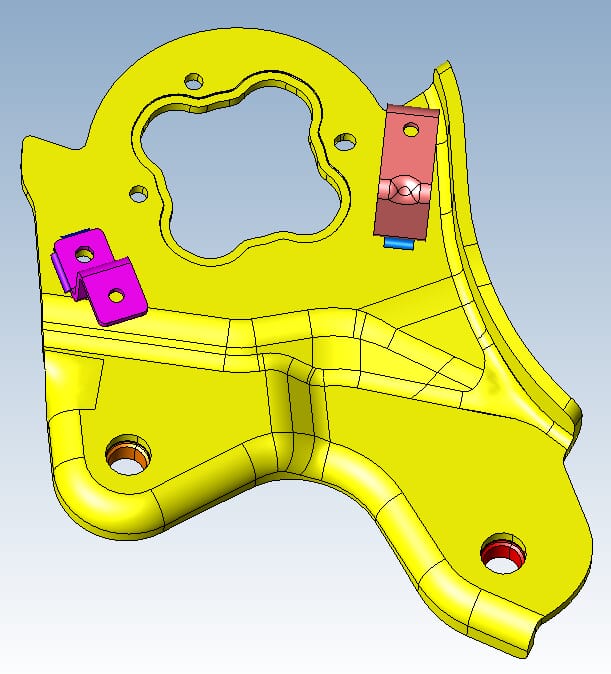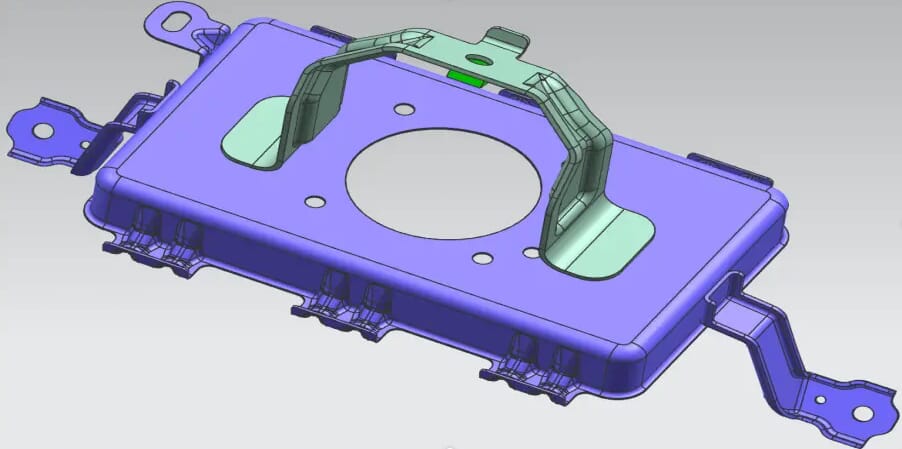 汽车前排坐垫马达支架,工艺为冲压和电泳,具备支撑和固定电机功能