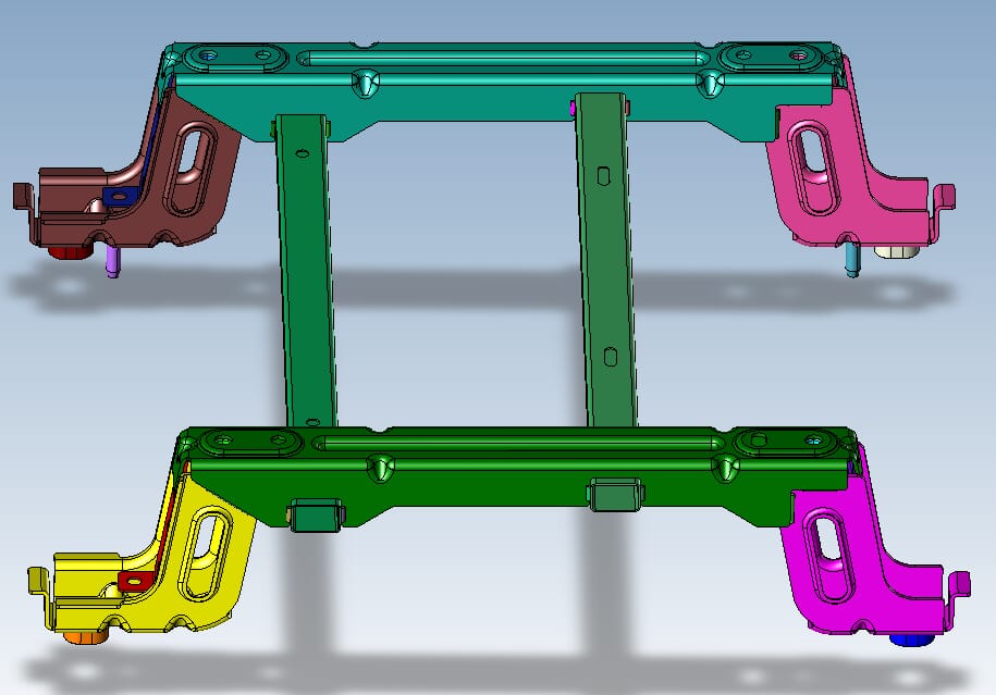 汽车前排坐框总成,工艺涉及冲压、铆压、焊接、电泳