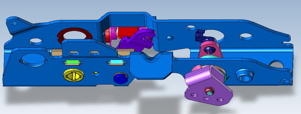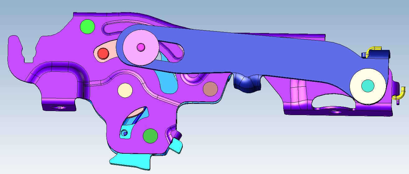 汽车前排坐垫解锁机构总成,工艺涉及冲压、铆压、激光打码