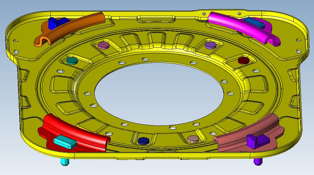 汽车坐垫类零件,结构简单,材料较厚,工艺为冲压和电泳